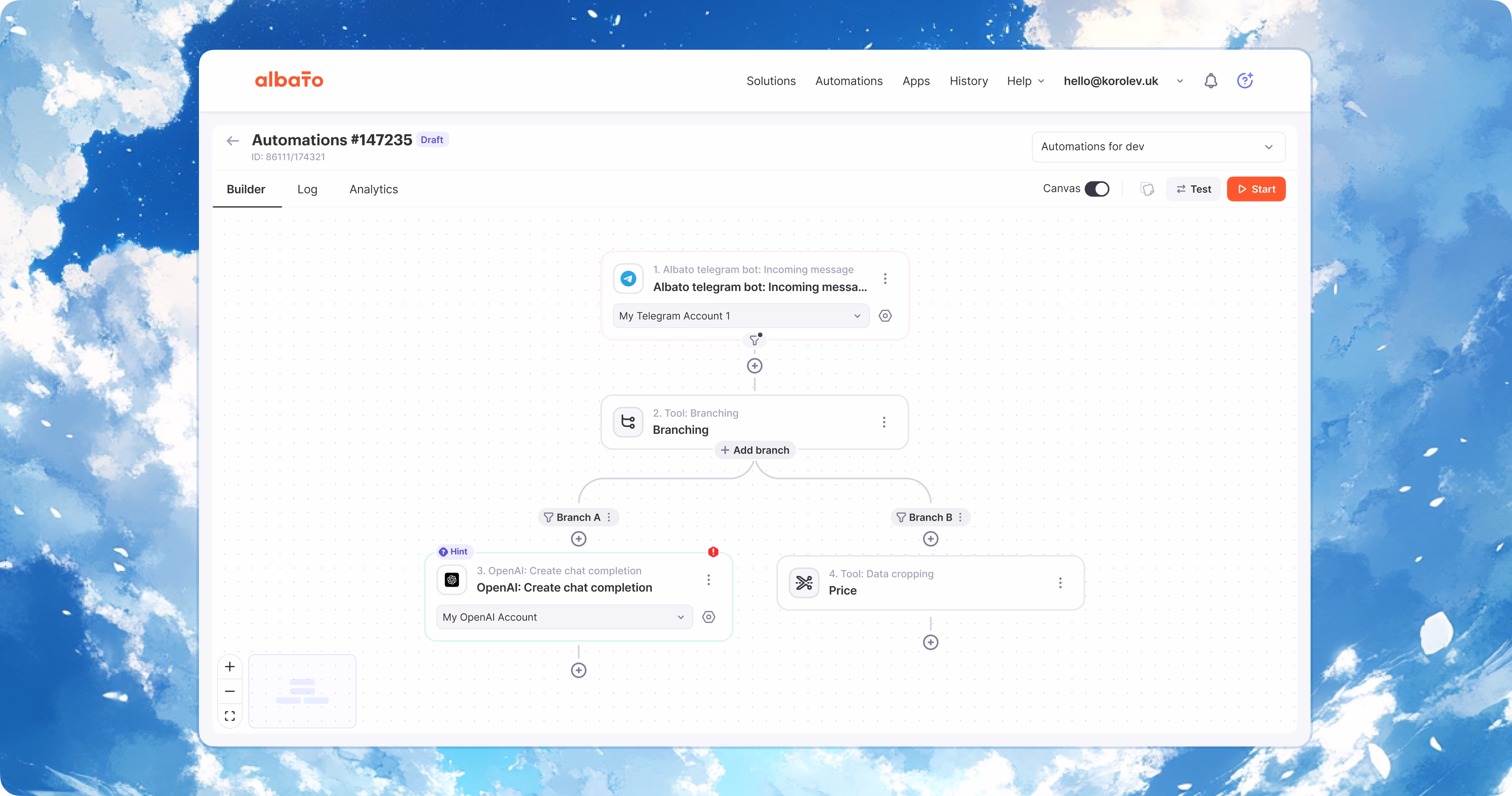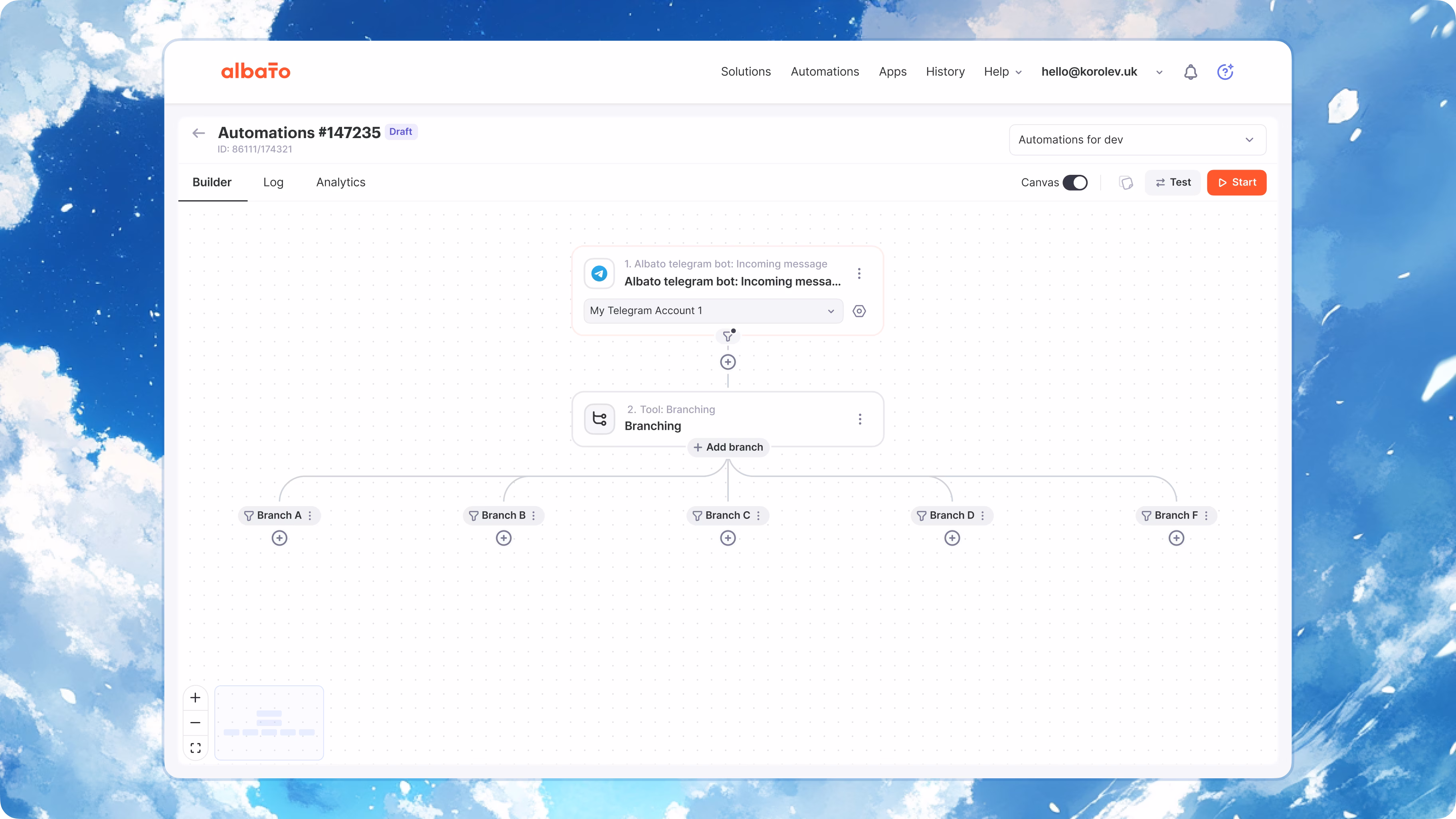Prepare Albato’s builder for complex workflows. Support branching and router logic through a canvas-based system. Migrate seamlessly without affecting current users or partners.
